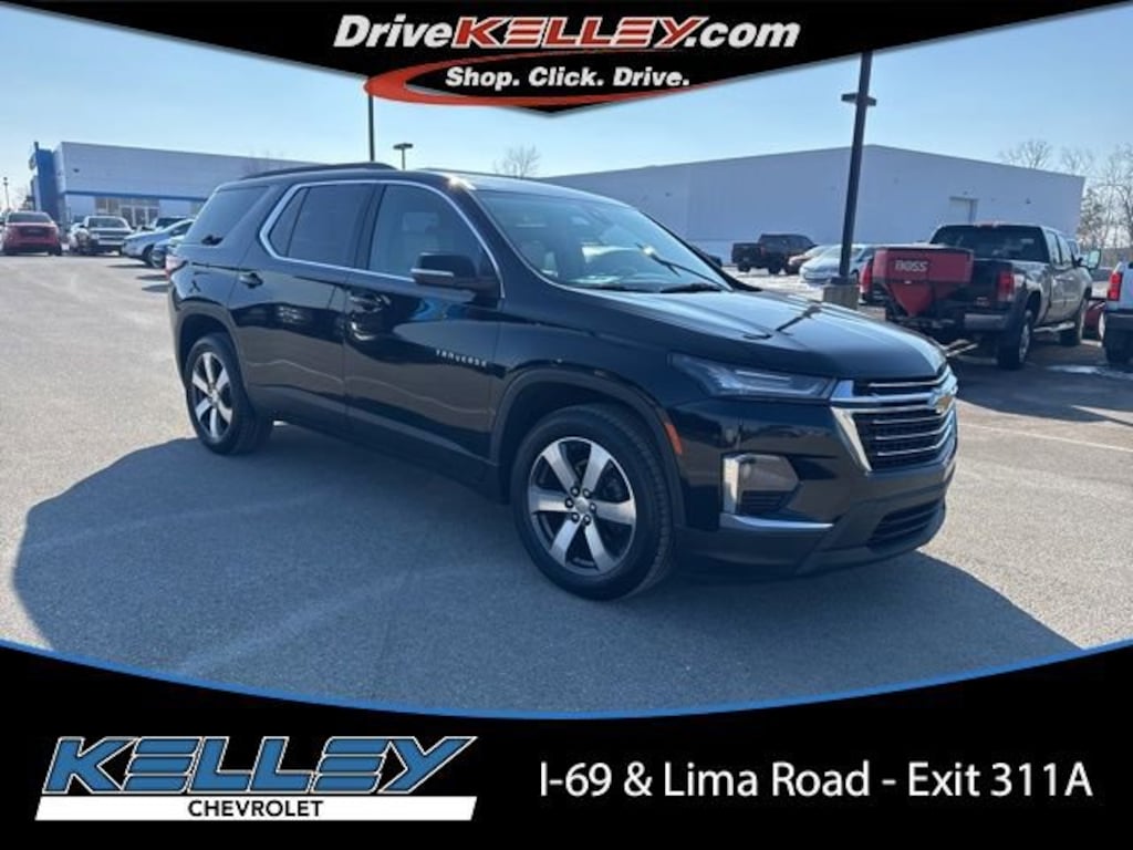 Mosaic Black Metallic 2022 Chevrolet Traverse 3.6L V6 SIDI VVT 18/27 City/Highway MPGKelley Automotive Group is proud to Pre-Apply Forever New Paint Protection to ALL New & Pre-Owned vehicles. To receive the Forever New Limited Warranty, $399 will be added to the purchase price of your Pre-Owned Vehicle. (Kelley Price + $399 (to receive Limited Warranty)Why Choose Us? You will receive FREE UNLIMITED CAR WASHES, good at ALL State of the Art Kelley Car Wash Locations, for as long as you own your vehicle! (**2 washes per week equates to an $832.00 value per year!**) Free Car Wash Locations include the 14/69 Auto Mall, Kelley Chevrolet, and Tom Kelley Chevrolet Buick Ford! (Just south of Fort Wayne in Decatur, IN)